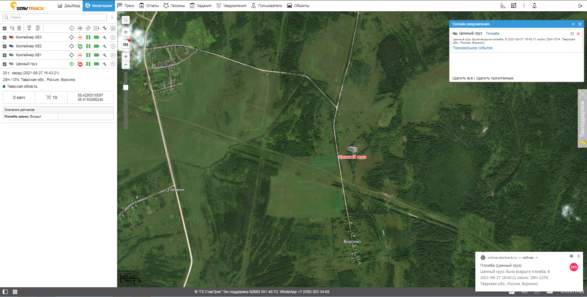 жүктің орналасқан жерін үнемі бақылау, соның ішінде нақты уақыт режимінде;
