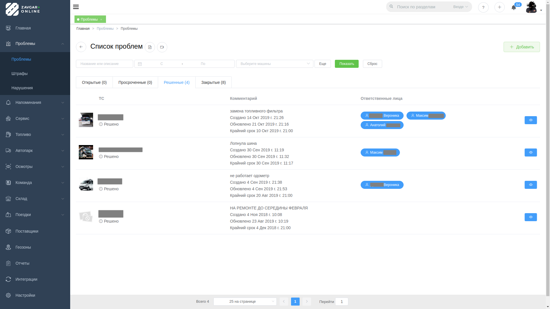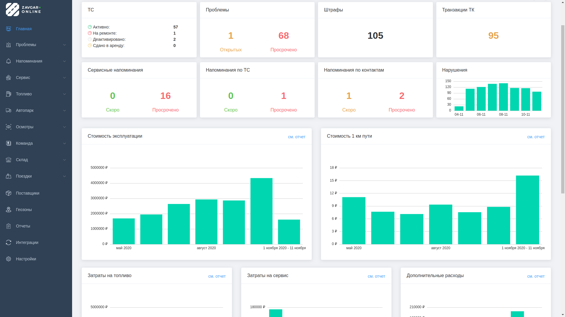 Завгар Онлайн жүйесінің құрамына кіретін модульдер